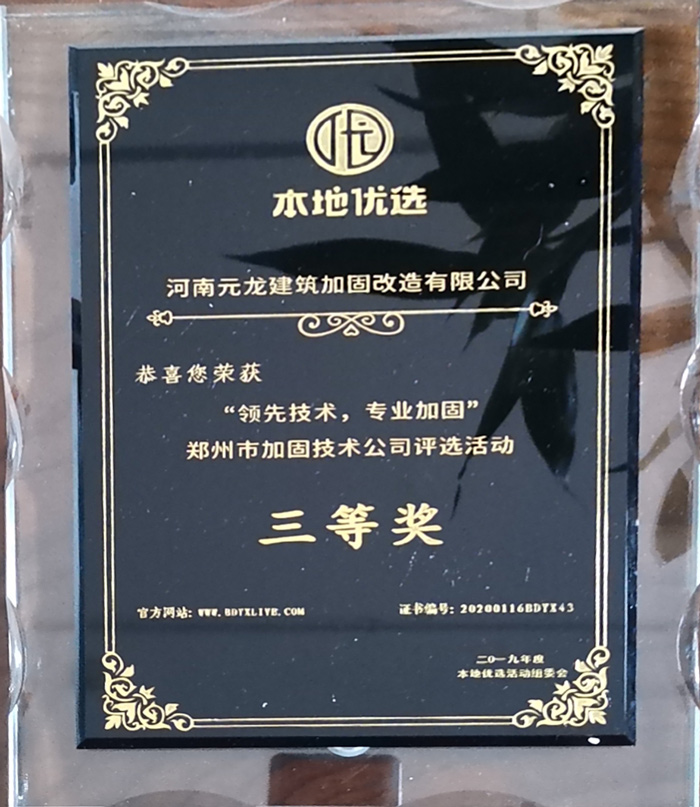 獲鄭州加固技術公司評選優(yōu)秀商家